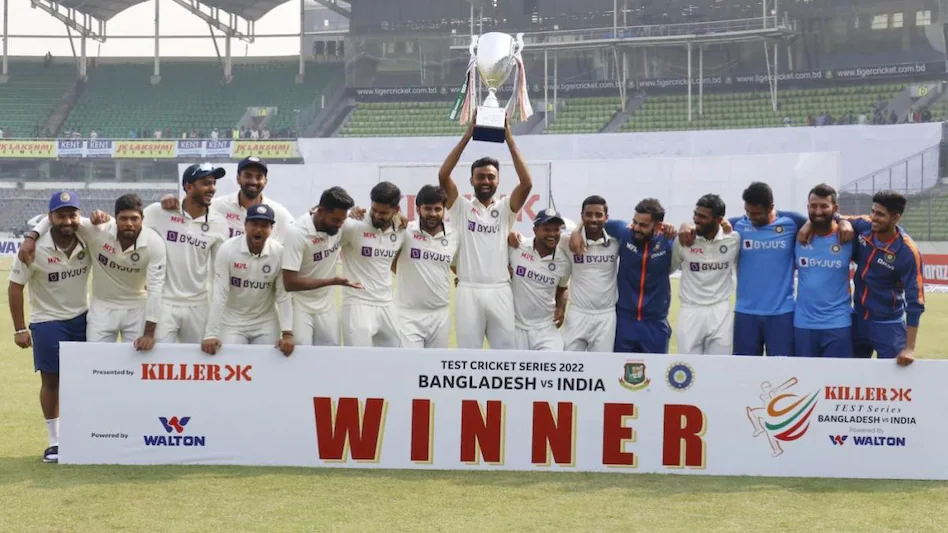 भारत ने बांग्लादेश को उसी के घर में हराकर कमाल कर दिया है. दो टेस्ट मैच की सीरीज में टीम इंडिया ने 2-0 से जीत हासिल की. भारत की साल 2022 में यह आखिरी सीरीज़ थी, जिसमें उसे जीत हासिल हुई. अब टीम इंडिया की नज़र वर्ल्ड टेस्ट चैम्पियनशिप के फाइनल पर टिकी हैं, क्योंकि इस सीरीज जीत के साथ भारत की स्थिति काफी मज़बूत हो गई है.