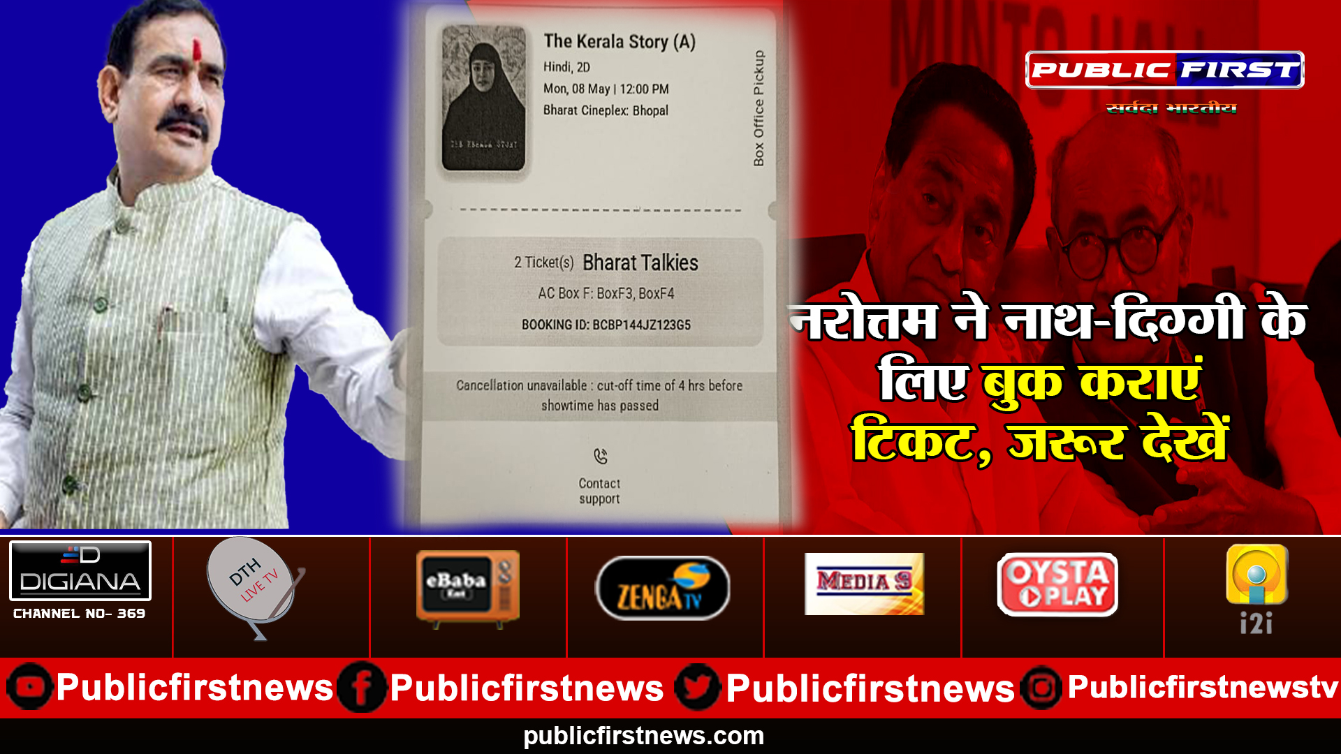 MP में “द केरला स्टोरी” पर सियासत जारी है। कांग्रेस के फिल्म के विरोध पर गृहमंत्री नरोत्तम मिश्रा ने पूर्व सीएम कमलनाथ और दिग्विजय सिंह के लिए भारत टॉकीज में फिल्म के दो टिकट बुक कराएं हैं। मिश्रा ने कहा कि जाकिर नाइक को शांति दूत बताने वालों को फिल्म जरूर देखनी चाहिए।