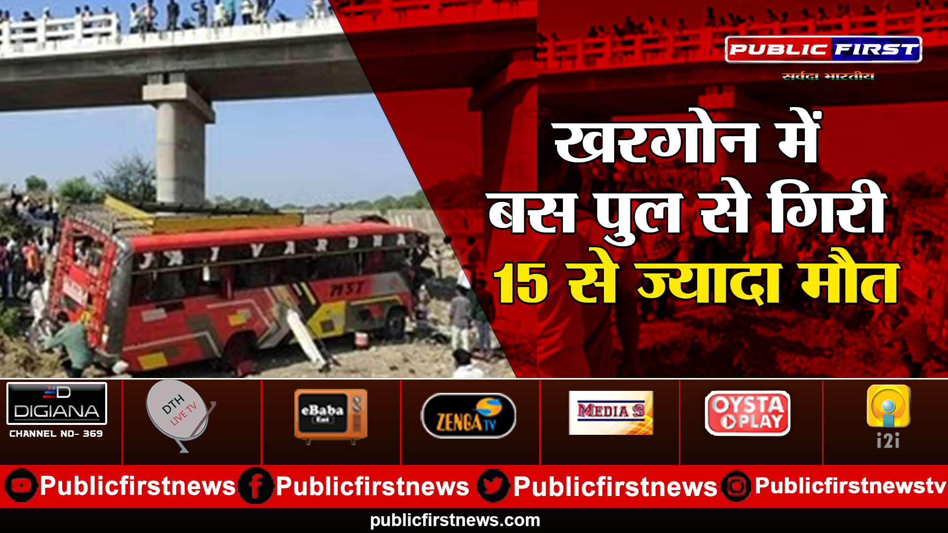 खरगोन में आज सुबह बड़ा हादसा हो गया। इंदौर जा रही बस डोंगरगांव और दसंगा के बीच बुढ़ार नदी के पुल की रेलिंग तोड़कर नीचे जा गिरी। हादसे में 14 लोगों की मौत की जानकारी मिली है। घायलों को खरगोन जिला अस्पताल ले जाया जा रहा है। घटनास्थल पर 7 एम्बुलेंस पहुंची हैं। खरगोन कलेक्टर, एसपी और एसडीओपी मौके पर मौजूद हैं। घटना कैसे हुई इसकी जानकारी भी निकाली जा रही है।
