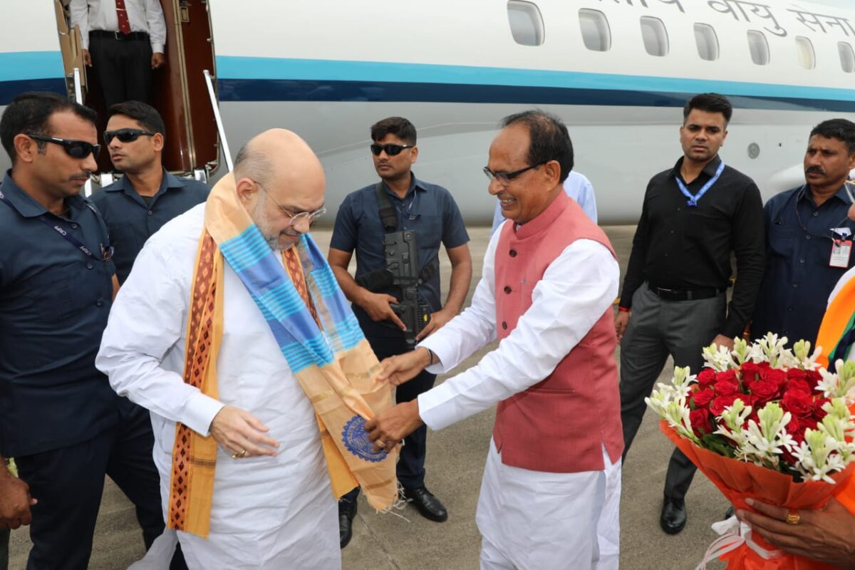 मप्र में चुनावी तैयारियों पर अपनी पैनी नज़र केन्द्रीय गृहमंत्री अमित शाह ने बना रखी है । इसी बीच चुनाव अभियान का आग़ाज़ करने अमित शाह रविवार को इंदौर पहुँचे । इन्दौर विमानतल पर मप्र के मुख्यमंत्री शिवराज सिंह चौहान ने अमित शाह का स्वागत किया । ( देखिये तस्वीरे )