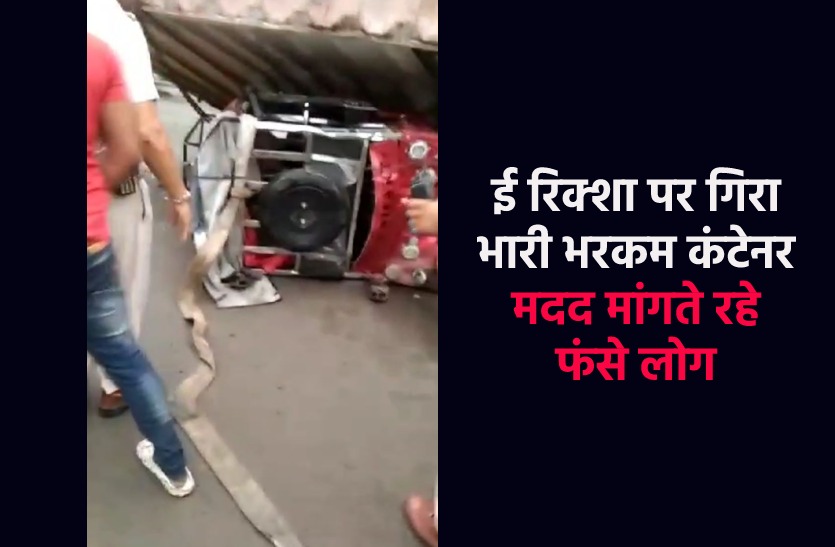 भोपाल–ई रिक्शा पर गिरा कंटेनर, आधे घंटे तक फंसे रहे 5 लोग