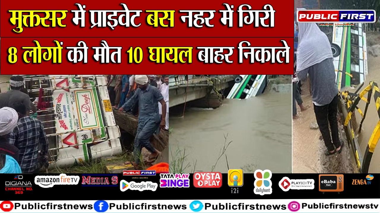 पंजाब के मुक्तसर जिले में मंगलवार दोपहर को मुक्तसर-कोटकपूरा रोड पर सवारियों से भरी बस नहर में गिर गई। यह बस मुक्तसर से कोटकपूरा जा रही थी। बस के नहर के पुल पर लगे लोहे के एंगल से टकराने के बाद यह हादसा हुआ।