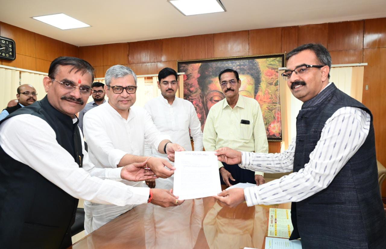 भारतीय जनता पार्टी के प्रदेश अध्यक्ष व सांसद विष्णुदत्त शर्मा और केंद्रीय मंत्री व प्रदेश चुनाव सह प्रभारी अश्विनी वैष्णव पार्टी पदाधिकारियों के साथ सोमवार को निर्वाचन कार्यालय पहुंचे और मुख्य निर्वाचन पदाधिकारी को इस संबंध में ज्ञापन सौंपा। आपको बता दें भारतीय जनता पार्टी द्वारा मुख्य निर्वाचन पदाधिकारी को सौंपे गए ज्ञापन में कहा गया है कि चुनाव आयोग का सूत्र वाक्य है कि कोई भी मतदाता मतदान से वंचित न रहे। लेकिन यदि फॉर्म 12 डी के माध्यम से आवेदन की अंतिम तिथि 26 अक्टूबर को आगे नहीं बढ़ाया जाता है, तो इस बात का अंदेशा है कि अनेक बुजुर्ग और दिव्यांग मतदाता मतदान से वंचित हो सकते हैं।