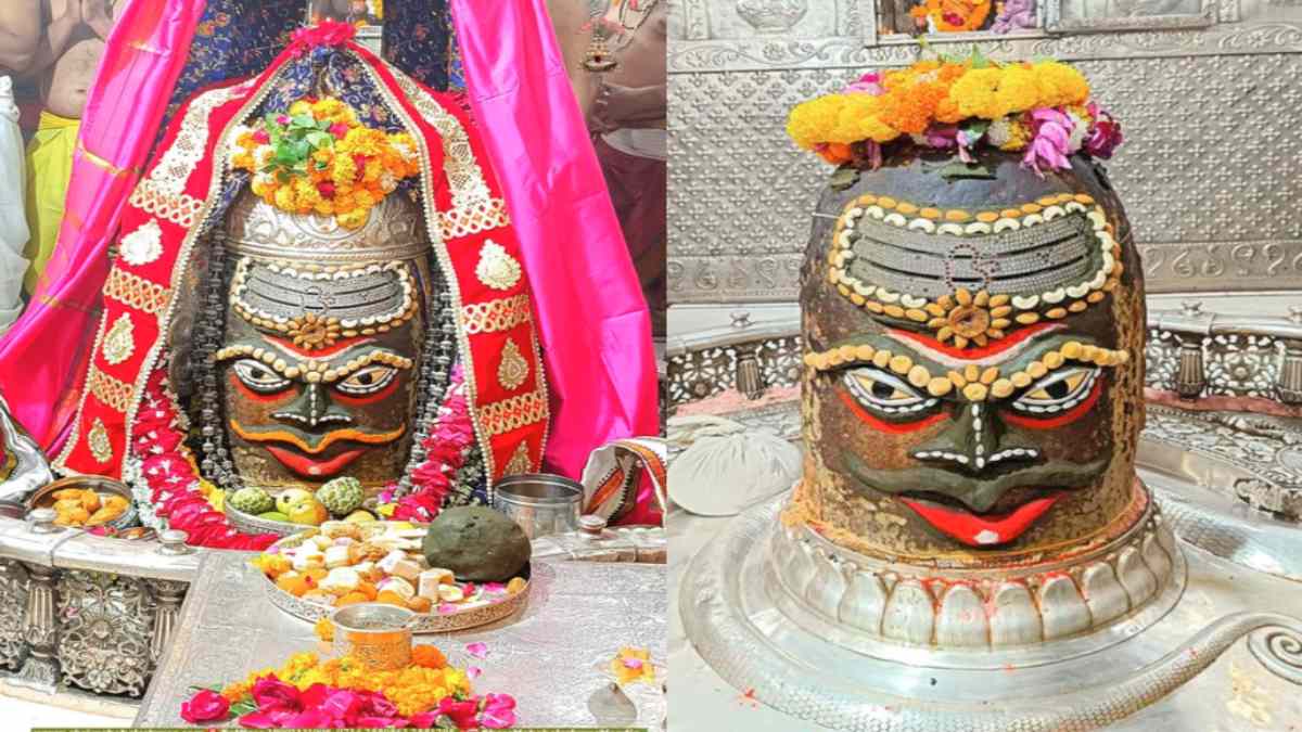 मध्यप्रदेश के उज्जैन में महाकाल लोक में स्थित विश्व प्रसिद्ध भगवान महादेव के महाकालेश्वर मंदिर में शनिवार सुबह 4 बजे मंदिर के कपाट खोले गए। आपको बता दें आज भांग, चंदन, ड्राफूट्स, आभूषण और त्रिपुंड से बाबा महाकाल का राजा स्वरूप में श्रृंगार किया गया। इसके लिए सबसे पहले भगवान महाकाल का जल से अभिषेक किया गया। इसके बाद पुजारियों द्वारा दूध, दही, घी, शहद, फलों के शुद्ध रस से बने पंचामृत से बाबा महाकाल का अभिषेक पूजन किया गया।