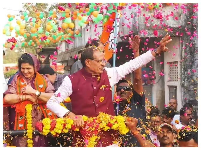मंच से मनावर के प्रत्याशी शिवराम कन्नौज को जिताने की अपील करते नजर आए मुख्यमंत्री शिवराज सिंह चौहान