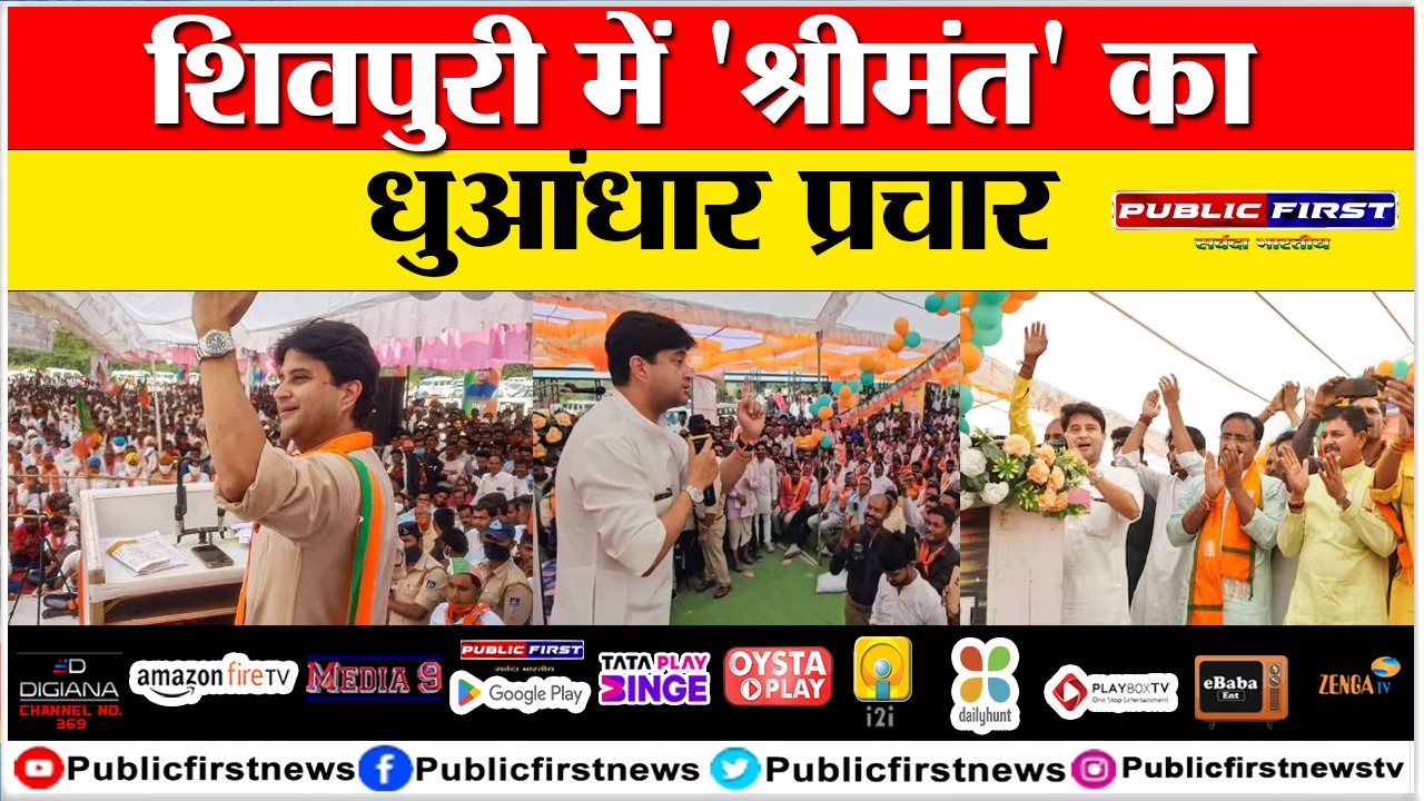जहाँ केंद्रीय उड्डयन मंत्री ज्योतिरादित्य सिंधिया ने शिवपुरी जिले के भारतीय जनता पार्टी के प्रत्याशी देवेंन्द्र जैन के समर्थन में एक आमसभा को संबोधित किया। इस दौरान केंद्रीय मंत्री ज्योतिरादित्य सिंधिया ने पूर्व मुख्यमंत्री कमलनाथ पर जमकर निशाना साधते हुए कहा कि कमलनाथ ने जब मुख्यमंत्री थे तो उन्होंने सिर्फ भाजपा की योजनाओं को बन्द करने का काम किया। उन्होंने भाजपा की 51 योजनाओं को बंद करने के साथ ही मध्यप्रदेश के किसानों का कर्ज माफ करने जैसे वादा कर विश्वासघात किया था उन्होंने भाजपा के पक्ष में जनता से अपील की।