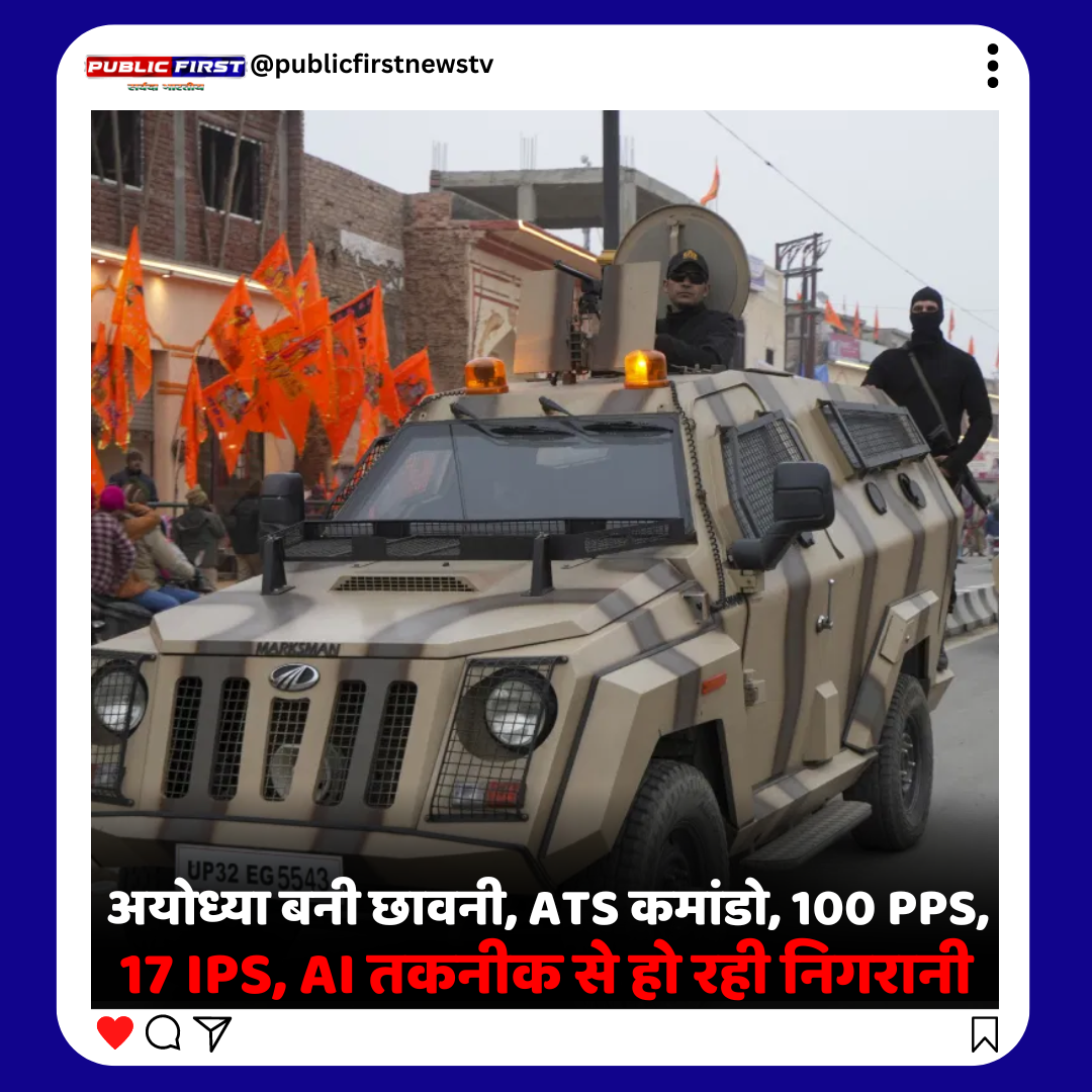 अयोध्या में राम मंदिर की प्राण प्रतिष्ठा में महज एक दिन बचा है. समारोह में करीब 8 हजार आमंत्रित मेहमानों के पहुंचने का अनुमान है. इसमें से कई VVIP गेस्ट भी हैं. यहां सुरक्षा के पुख्ता इंतजाम किए गए हैं. शनिवार रात से ही अयोध्या छावनी में बदल गई है. अयोध्या में ब्लैककैट कमांडो, बख्तरबंद गाड़ियां और ड्रोन लगातार निगरानी रख रहे हैं. यूपी पुलिस ने 3 डीआईजी की तैनाती की है. यही नहीं, 17 आईपीएस, 100 पीपीएस लेवल के अधिकारी, 325 इंस्पेक्टर, 800 सब-इंस्पेक्टर और 1000 से अधिक कॉन्स्टेबल को सुरक्षा व्यवस्था मजबूत रखने के लिए तैनात किया गया है. चप्पे-चप्पे पर निगरानी के लिए AI की मदद ली जा रही है.