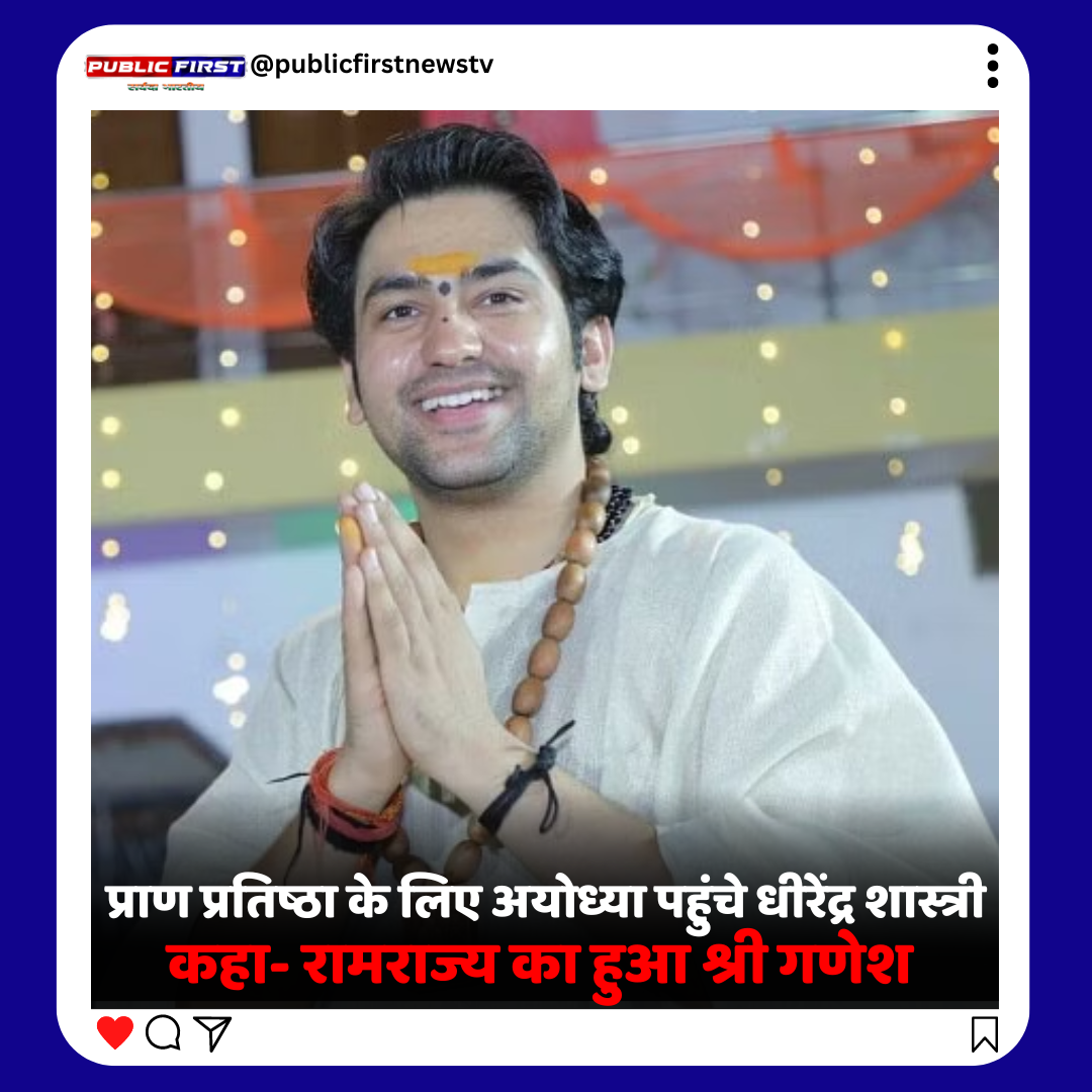 धीरेंद्र शास्त्री अयोध्या पहुंचे और रामलाल के प्राण प्रतिष्ठा समारोह में भाग लिया. रामलला की प्राण प्रतिष्ठा कार्यक्रम में शामिल होने से पहले धीरेंद्र शास्त्री ने मीडिया से राम मंदिर को लेकर बातचीत भी की. धीरेंद्र शास्त्री ने कहा कि, 22 तारीख का इंतजार केवल देश को ही नहीं बल्कि पूरी दुनिया को है. हमारे लिए गर्व की बात है कि प्रभु श्रीराम मंदिर में विराजमान हो रहे हैं. रामराज्य पर धीरेंद्र शास्त्री ने कहा कि, देश में राम लहर चल रही है. उन्होंने ये भी कहा कि, जो राम का नहीं वो किसी काम का नहीं, इसे ही रामराज्य कहते हैं और रामराज्य का श्रीगणेश हो चुका है.