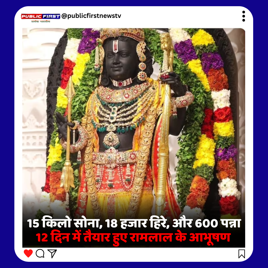 रामलला की सुंदर प्रतिमा पर सोने, हीरे, माणिक्य और पन्नों से जड़े आभूषणों ने खूबसूरती में चार-चांद लगा दिए. प्राण-प्रतिष्ठा के दिन की रामलला की जो तस्वीरें सामने आईं, उनमें उनका रूप बेहद मनमोहक नजर आ रहा है. रामलला के आभूषण हरसहायमल श्यामलाल ज्वैलर्स ने तैयार किए हैं. उन्होंने 10 से 12 दिनों में ये आभूषण बनाए हैं. रामलला को मुकुट समेत 14 जेवर पहनाए गए हैं. इन 14 आभूषणों में रामलला का मुकुट, कानों के कुंडल, गले के लिए चार हार, हाथों में कंगन, कमर बंद, उंगली में अगूंठियां, तिलक और धनुष-बाण शामिल हैं.