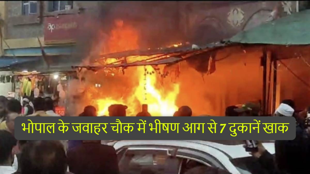 राजधानी भोपाल के जवाहर चौक में भीषण आग से 7 दुकानें खाक हो गई। ये दुकानें टीन की थी। पास में लगे बिजली पोल से निकल रही चिंगारी ने दुकानों को चपेट में ले लिया और कुछ ही देर में दुकानें धुं-धुंकर जलने लगी। करीब 4 घंटे में आग पर काबू पाया। आग से व्यापारियों का लाखों का नुकसान हो गया। आंखों के सामने बर्बादी को देख वे रो पड़े।