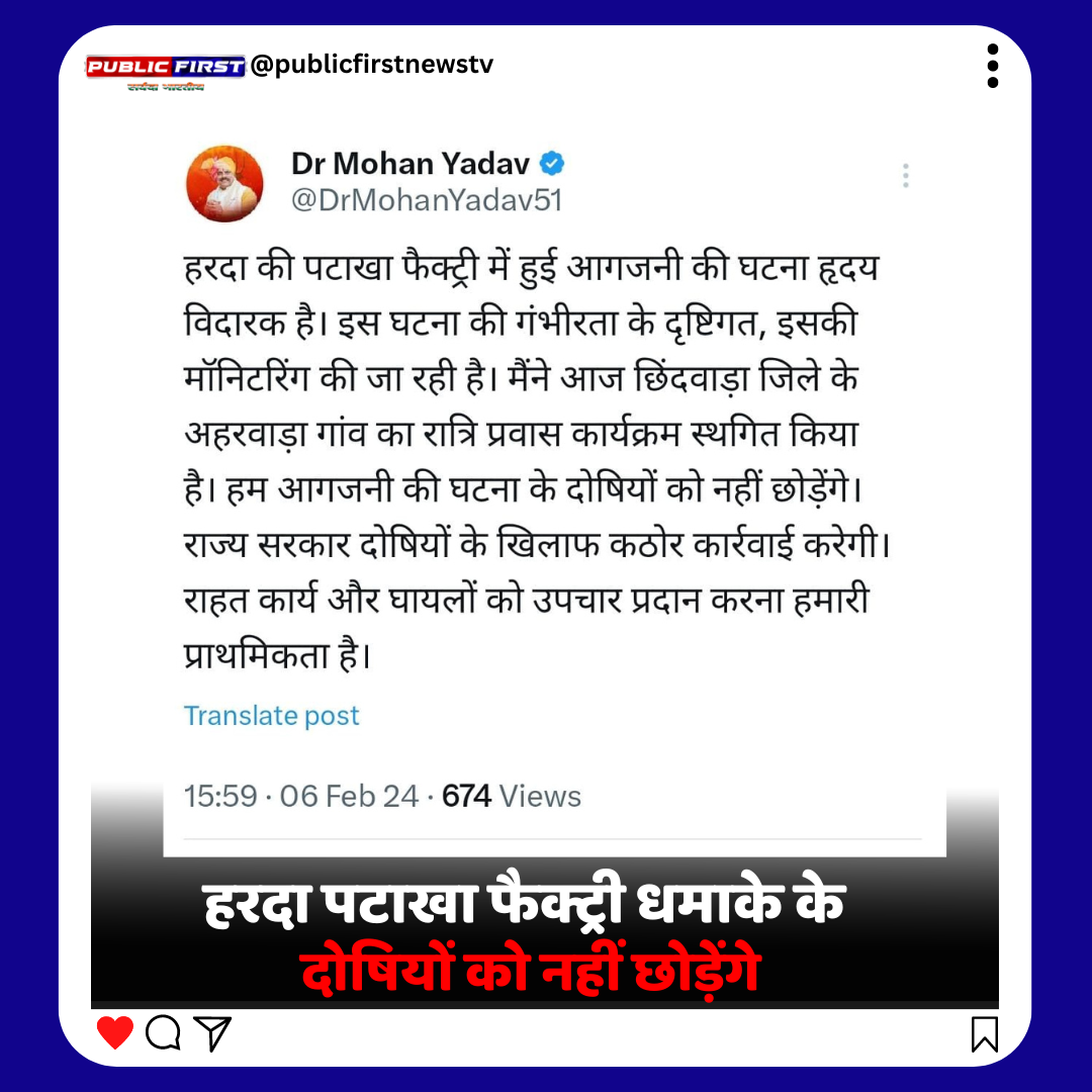 हरदा में पटाखा फैक्ट्री में ब्लास्ट घटना हृदय विदारक है।घटना के समाचार से सभी का मन बड़ा ही द्रवित है।