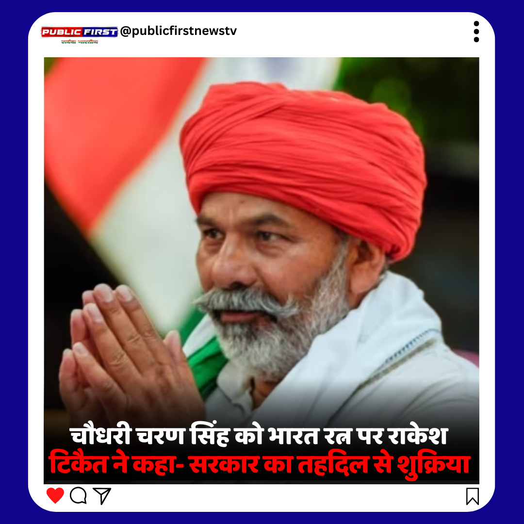 मोदी सरकार ने भारत रत्न देने के लिए शुक्रवार को तीन नामों की घोषणा की, जिनमें पूर्व प्रधानमंत्री चरण सिंह, पीवी. नरसिम्हा राव के अलावा डॉ. स्वामी नाथन शामिल हैं. चौधरी चरण सिंह को भारत रत्न से सम्मानित किए जाने की घोषणा पर भारतीय किसान यूनियन के राष्ट्रीय प्रवक्ता राकेश टिकैत ने प्रतिक्रिया दी. टिकैत ने कहा हम भारत सरकार का तहेदिल से इसके लिए शुक्रिया अदा करते हैं और डबल शुक्रिया भी अदा कर देंगे.