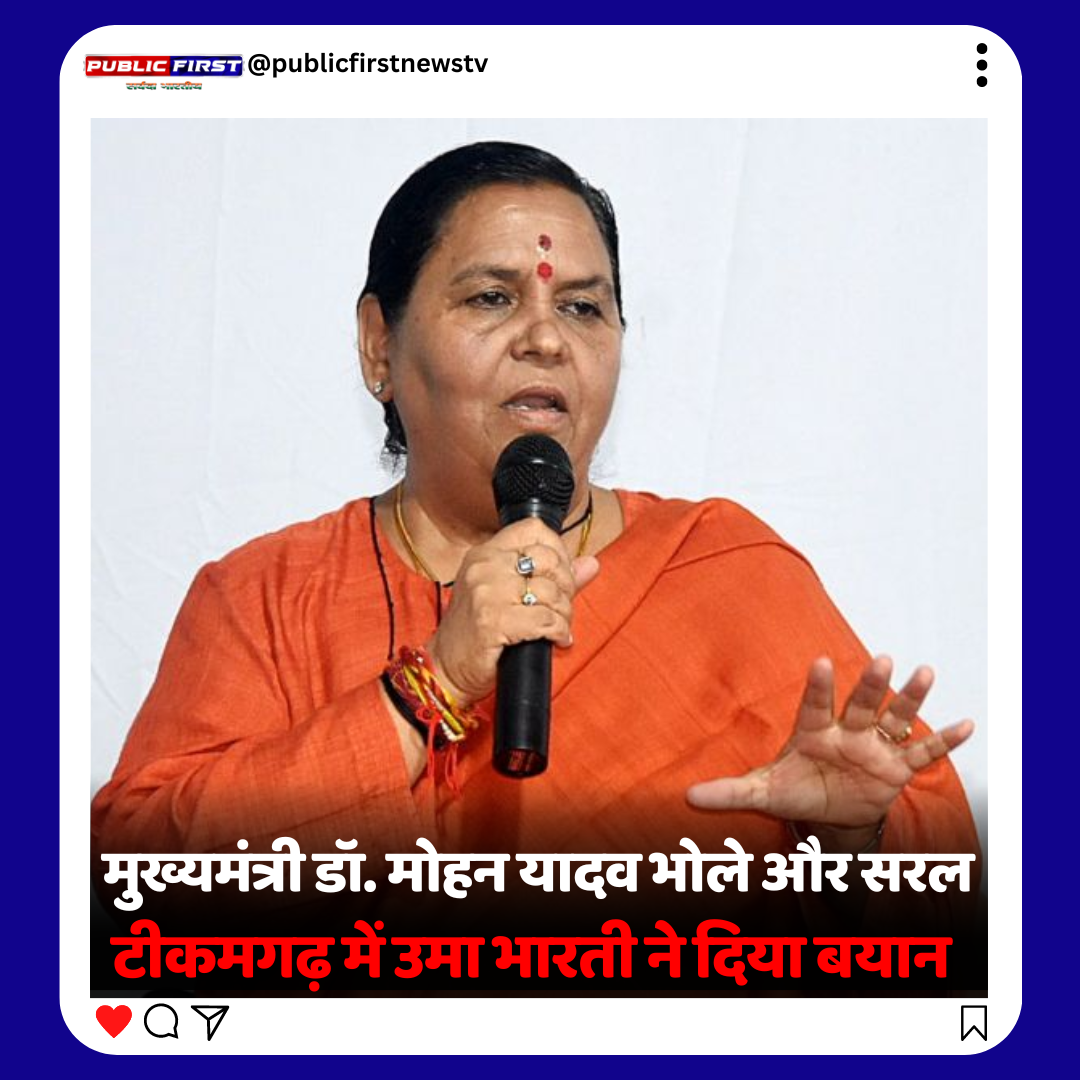 वहीं उमा भारती से पत्रकारों द्वारा जब पूछा गया कि, मध्यप्रदेश के पूर्व मुख्यमंत्री शिवराज सिंह चौहान की अब पार्टी में क्या भूमिका रहेगी, तो उनका कहना था शिवराज एक बहुत बड़े नेता हैं और आगे भी वे बड़े नेता रहेंगे. उनकी प्रतिष्ठा कभी भी कम नहीं होगी. वहीं मीडिया द्वारा जब उनसे पूछा गया कि, मुख्यमंत्री मोहन यादव के मंत्रिमंडल में बुंदेलखंड से काफी कम मंत्री बनाये गए है. जबकि और भी मंत्री बन सकते थे, तो उनका कहना यह रहा कि, मोहन यादव ने सभी वर्ग को साधकर मंत्रिमंडल बनाया है, जो ठीक है. मैं पूरी तरह से मोहन यादव के साथ हूं और वह काफी सरल प्रकृति के हैं. मैं उन में अपनी छवि देखती हूं, मैं 2004 में ऐसी ही थी. वहीं उन्होंने लाल कृष्ण आडवाणी को भारत रत्न देने पर काफी खुशी भी जाहिर की है.