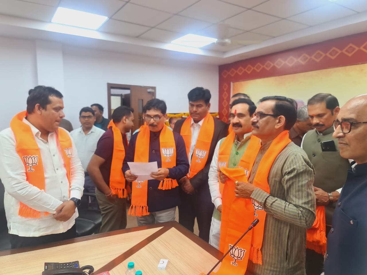भारतीय जनता पार्टी, प्रदेश कार्यालय में पार्टी के प्रदेश अध्यक्ष व सांसद विष्णुदत्त शर्मा एवं न्यू ज्वॉइनिंग टोली के प्रदेश संयोजक डॉ. नरोत्तम मिश्रा के समक्ष बुधवार को महाकौशल में कांग्रेस स्वास्थ्य एवं चिकित्सा प्रकोष्ठ प्रभारी डॉ. बसंत राय, ग्वालियर चंबल संभाग प्रभारी डॉ. सिद्धांत दुबे, शिवपुरी में चिकित्सा प्रकोष्ठ के जिला अध्यक्ष डॉ. नीलेश शर्मा, चिकित्सा प्रकोष्ठ की संयोजक डॉ. ऋचा तिवारी, रीवा टी.आर.एम. कॉलेज पूर्व प्राचार्य डॉ. रामलला शुक्ला चिकित्सा प्रकोष्ठ के विंध्य संभाग के प्रभारी व प्रदेश उपाध्यक्ष डॉ. अमित तिवारी, रीवा प्रकोष्ठ अध्यक्ष डॉ. दीपनारायण शर्मा, सतना प्रकोष्ठ अध्यक्ष डॉ. दीपक कनौजिया, सागर प्रकोष्ठ अध्यक्ष डॉ. शिवानी वैश्य, महू प्रकोष्ठ अध्यक्ष डॉ. प्रज्ञा चतुर्वेदी, मऊगंज प्रकोष्ठ अध्यक्ष डॉ. कैलाश गुप्ता, रीवा प्रकोष्ठ अध्यक्ष डॉ. अमर पटेल, रीवा कोविड एसोसिएट अध्यक्ष डॉ. एस.एम. शर्मा, रीवा ब्लॉक अध्यक्ष डॉ. धीरेन्द्र शर्मा, डॉ. टी.के. पाठक, डॉ. मनीष देव वर्मा सहित 12 जिलो के 60 से अधिक चिकित्सकों, 20 से अधिक फॉर्मासिस्ट एवं प्रबुद्धजनों ने भारतीय जनता पार्टी की विचारधारा और प्रधानमंत्री नरेन्द्र मोदी के विकास कार्यों से प्रभावित होकर पार्टी की सदस्यता ग्रहण की।