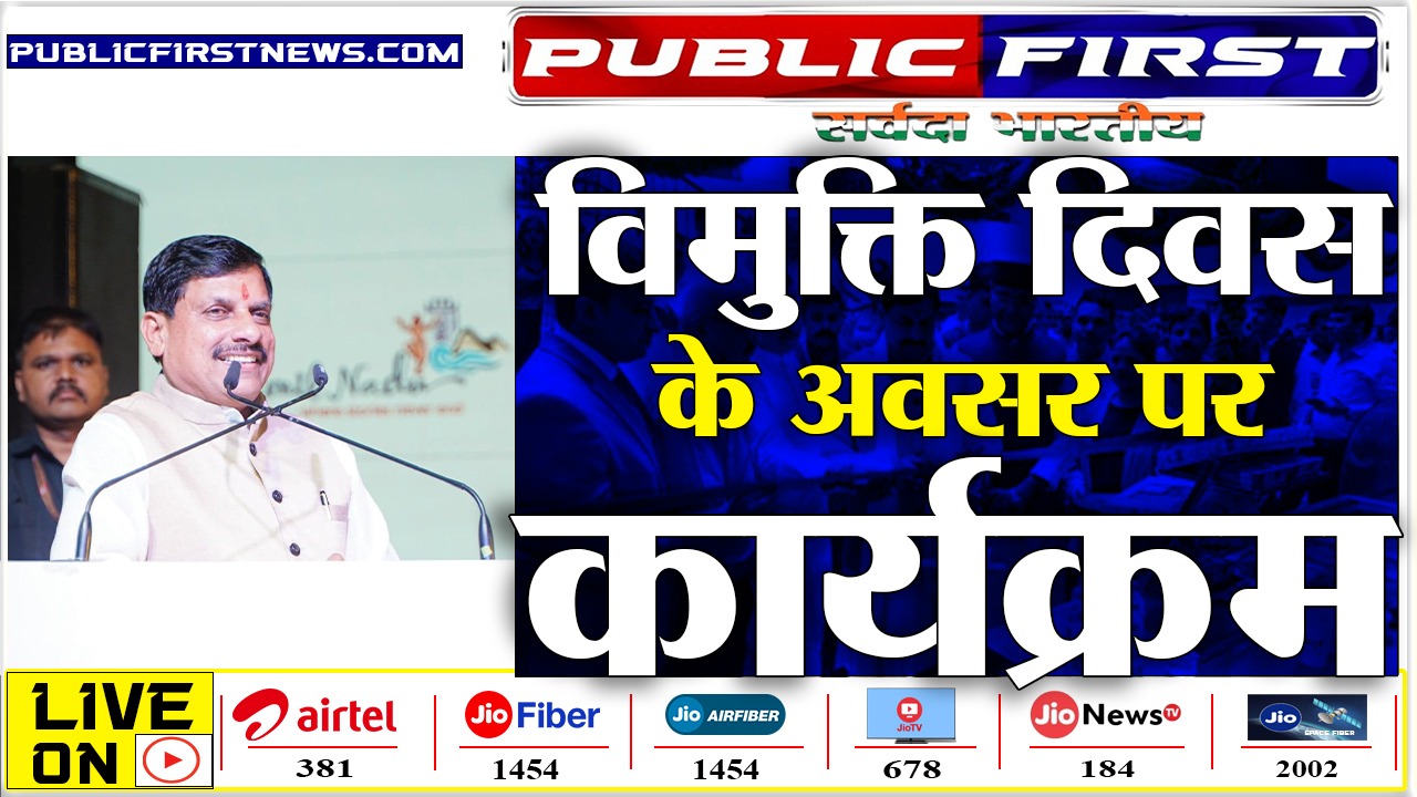 Share Facebook Twitter LinkedIn Pinterest Email भोपाल : 31 अगस्त 2024 “विमुक्ति दिवस” के अवसर पर राज्य स्तरीय कार्यक्रम मुख्यमंत्री डॉ. मोहन यादव कार्यक्रम में मौजूद सीएम डॉ, मोहन यादव LIVE PUBLICFIRSTNEWS.COM