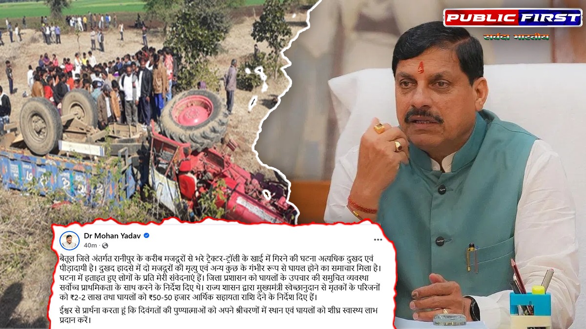 बैतूल जिले अंतर्गत रानीपुर के करीब मजदूरों से भरे ट्रैक्टर-ट्रॉली के खाई में गिरने की घटना अत्यधिक दुखद एवं पीड़ादायी है। दुखद हादसे में दो मजदूरों की मृत्यु एवं अन्य कुछ के गंभीर रूप से घायल होने का समाचार मिला है। घटना में हताहत हुए लोगों के प्रति मेरी संवेदनाएं हैं। जिला प्रशासन को घायलों के उपचार की समुचित व्यवस्था सर्वोच्च प्राथमिकता के साथ करने के निर्देश दिए थे। राज्य शासन द्वारा मुख्यमंत्री स्वेच्छानुदान से मृतकों के परिजनों को ₹2-2 लाख तथा घायलों को ₹50-50 हजार आर्थिक सहायता राशि देने के निर्देश दिए हैं।