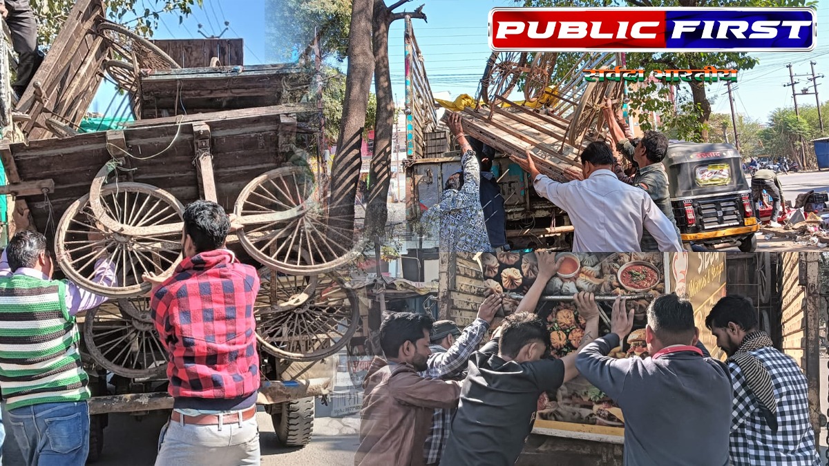 - निगम आयुक्त श्री हरेन्द्र नारायन के निर्देश पर बुधवार को निगम के अतिक्रमण निरोधक दस्ते ने दानिश नगर चौराहा, राजस्थान मिष्ठान भंडार, भेल संगम चौराहा तक अतिक्रमणों के विरूद्ध कार्यवाही करते हुए 12 ठेले, 02 छत ठेले, 01 पान पार्लर, 46 कैरेड, टेबिल, स्टूल आदि सहित 04 ट्रक सामान भी जप्त किया।