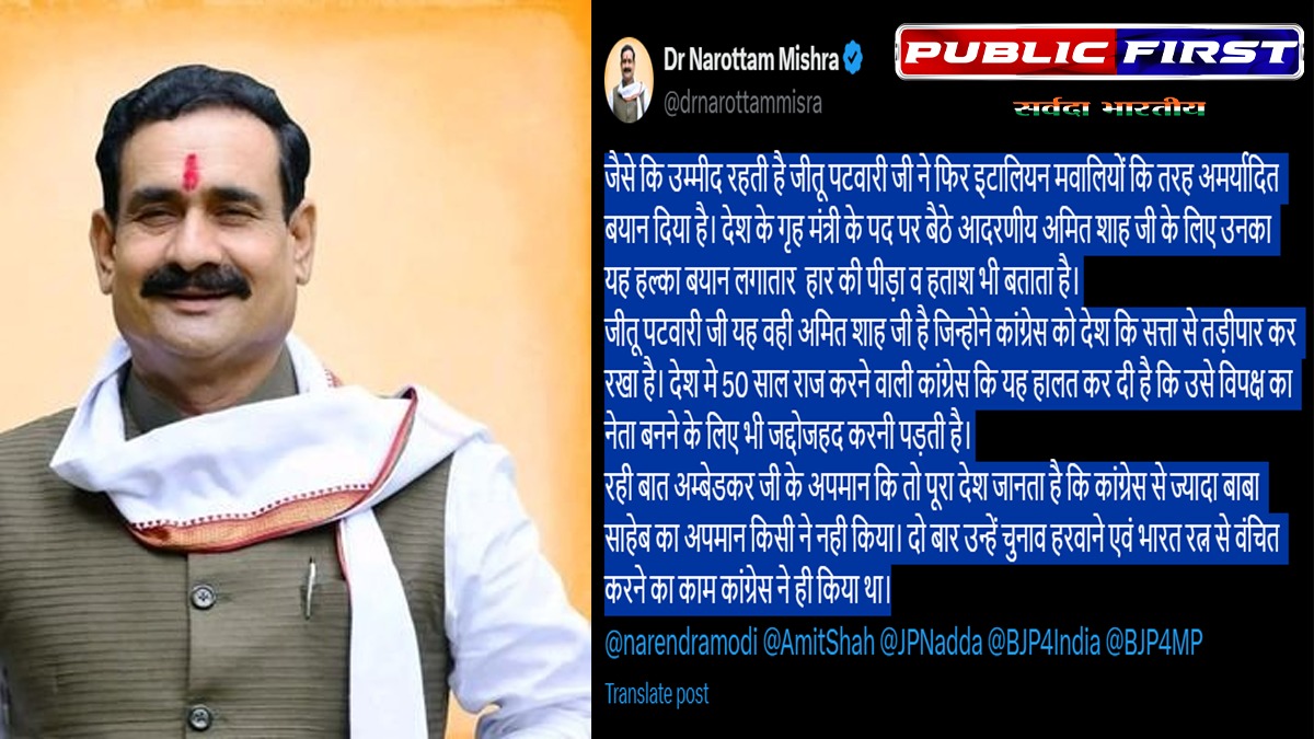 डॉ मिश्रा ने अपने ट्वीटर हेंडल एक्स पर लिखा है कि जैसे कि उम्मीद रहती है जीतू पटवारी जी ने फिर इटालियन मवालियों कि तरह अमर्यादित बयान दिया है। देश के गृह मंत्री के पद पर बैठे अमित शाह जी के लिए उनका यह हल्का बयान लगातार हार की पीड़ा व हताश भी बताता है।