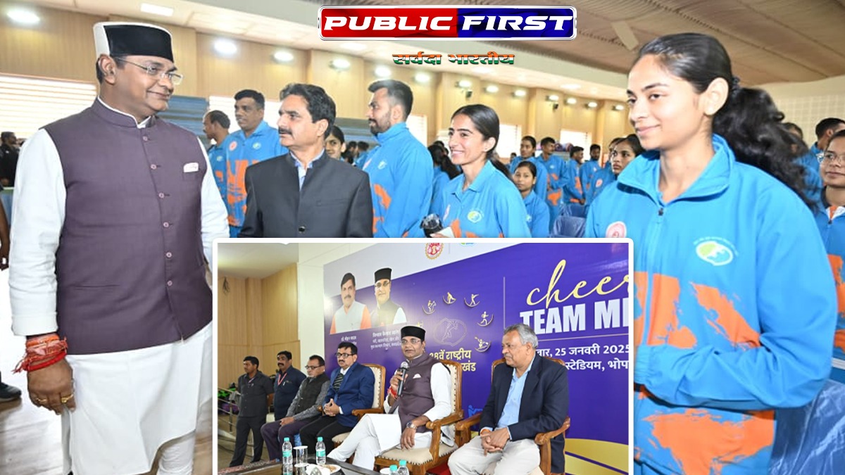 सहकारिता, खेल एवं युवा कल्याण मंत्री विश्वास कैलाश सारंग ने शनिवार को तात्याटोपे स्टेडियम, भोपाल में आयोजित ‘चीयर्स टीम एमपी’ कार्यक्रम में 38वें नेशनल गेम्स, उत्तराखंड में भाग लेने जा रहे प्रदेश के खिलाड़ियों से संवाद कर उनका उत्साह बढ़ाया। इस अवसर पर मंत्री सारंग ने खिलाड़ियों को जीत के महत्वपूर्ण टिप्स साझा किए और उन्हें स्वर्ण पदक जीतने का लक्ष्य लेकर मैदान में उतरने की प्रेरणा दी।