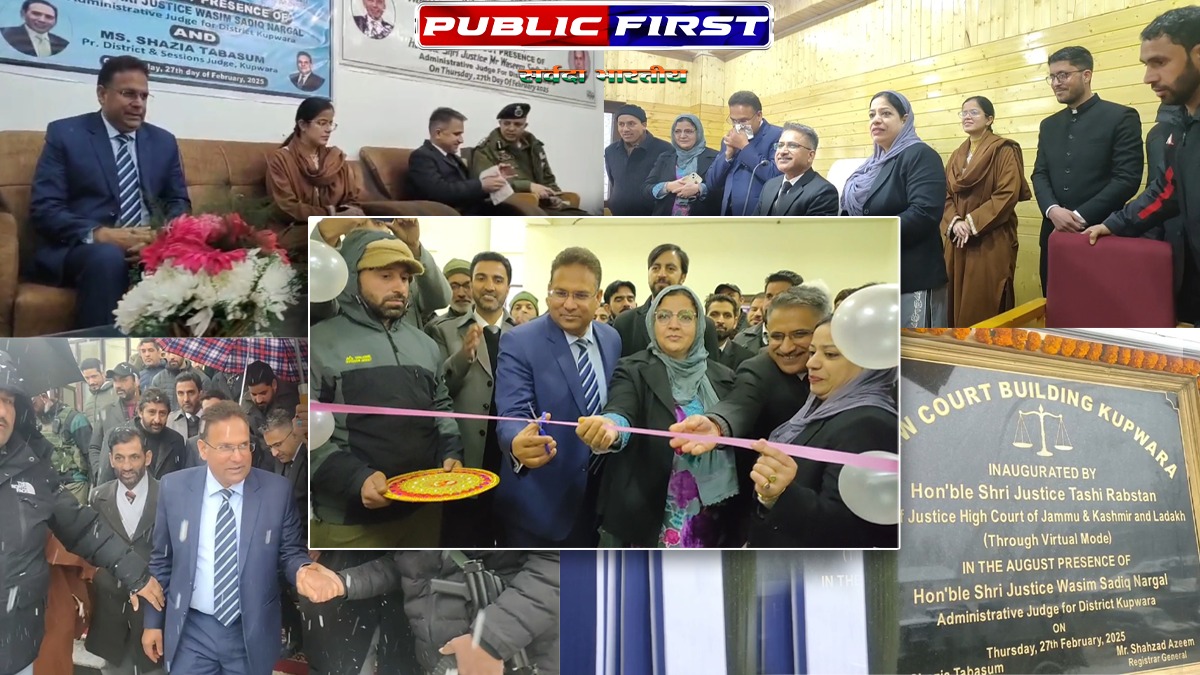 जम्मू, कश्मीर और लद्दाख उच्च न्यायालय के मुख्य न्यायाधीश ताशी रब्सटन ने आज कुपवाड़ा में जिला न्यायालय परिसर की नई और अत्याधुनिक बिल्डिंग का ई-उद्घाटन किया।
