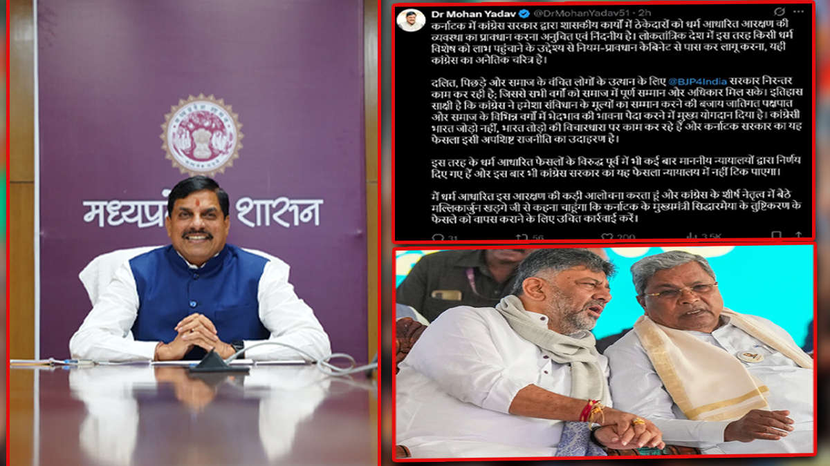 मप्र के मुख्यमंत्री डॉ. मोहन यादव ने कर्नाटक की कांग्रेस सरकार के मुस्लिम आरक्षण पर बड़ा बयान जारी किया है। ।