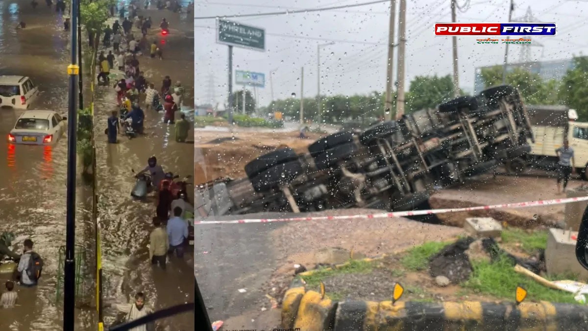 सदर्न पेरीफेरल रोड पर भारी वर्षा के कारण सड़क धंस गई, जिससे एक ट्रक पलट गया और यातायात पूरी तरह से ठप हो गया। सेक्टर-22 में बारिश और तेज हवाओं के कारण कई पेड़ गिर गए, जिससे बिजली आपूर्ति भी बाधित हुई।