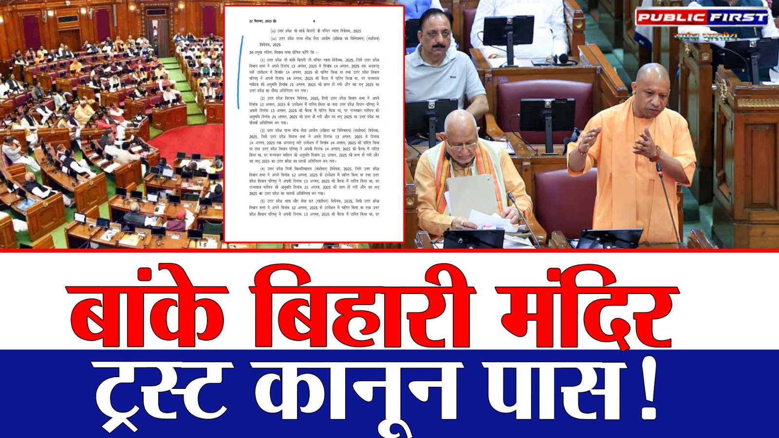 उत्तर प्रदेश विधानसभा और विधान परिषद के दोनों सदनों से पारित उत्तर प्रदेश श्री बांके बिहारी जी मंदिर ट्रस्ट विधेयक, 2025 को राज्यपाल की मंज़ूरी मिल गई है। राज्यपाल की स्वीकृति के साथ ही यह विधेयक अब विधिवत कानून बन गया है। इस महत्वपूर्ण घटनाक्रम की जानकारी आज विधानसभा के प्रमुख सचिव प्रदीप दुबे द्वारा सदन को औपचारिक रूप से दी जाएगी।