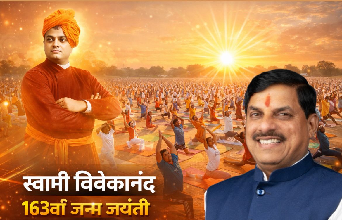 स्वामी विवेकानंद जी की 163वीं जयंती पर मध्यप्रदेश में ऊर्जा, योग और भारतीय संस्कृति का अद्भुत संगम देखने को मिला। राज्य स्तरीय सामूहिक सूर्य नमस्कार कार्यक्रम में मुख्यमंत्री डॉ. मोहन यादव ने योग, पर्यावरण, जीवन मूल्यों और आत्मनिर्भर भारत का संदेश दिया।