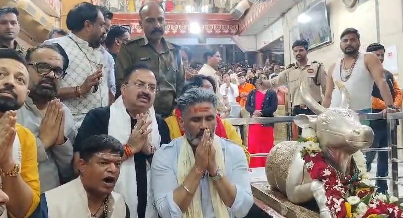 मशहूर बॉलीवुड अभिनेता सुनील शेट्टी मंगलवार को उज्जैन स्थित श्री महाकालेश्वर मंदिर पहुंचे। उन्होंने गर्भगृह की चौखट से भगवान महाकाल के दर्शन किए और नंदीहाल में बैठकर विधिवत शिव आराधना की। मंदिर के पुजारी आशीष गुरु ने पूजन-अर्चन संपन्न कराया।