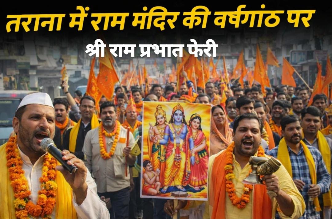 माँ अहिल्या की नगरी तराना में अयोध्या धाम स्थित श्रीराम मंदिर की दूसरी वर्षगांठ के पावन अवसर पर गुरुवार सुबह श्रद्धा और भक्ति का अद्भुत संगम देखने को मिला। श्री राम प्रभात फेरी भक्त मंडल के तत्वावधान में सुबह 7:30 बजे भव्य एवं संगीतमय प्रभात फेरी निकाली गई, जिसमें बड़ी संख्या में श्रद्धालु शामिल हुए।