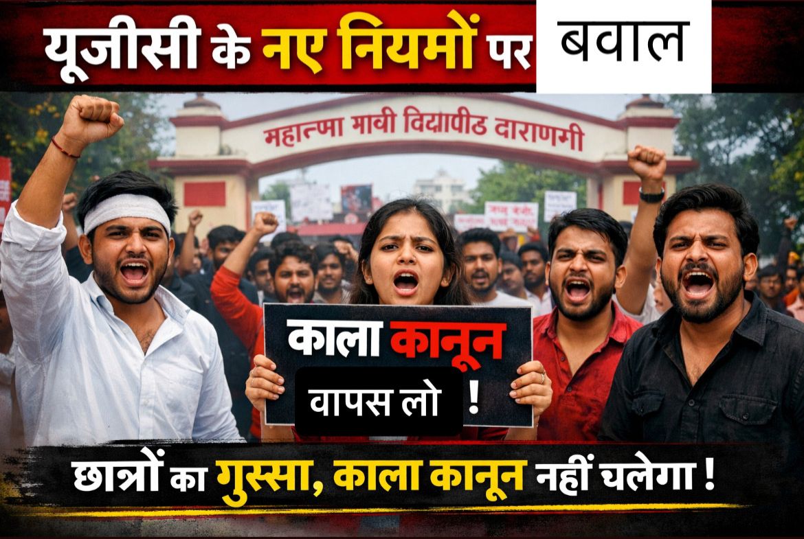देशभर में यूनिवर्सिटी ग्रांट्स कमीशन (UGC) के नए नियमों को लेकर विरोध तेज़ होता जा रहा है। इसी कड़ी में महात्मा गांधी काशी विद्यापीठ के छात्रों ने भी खुलकर विरोध दर्ज कराया है। छात्रों ने यूजीसी के नए प्रावधानों को “काला कानून” बताते हुए इसे सामान्य वर्ग के खिलाफ बताया।