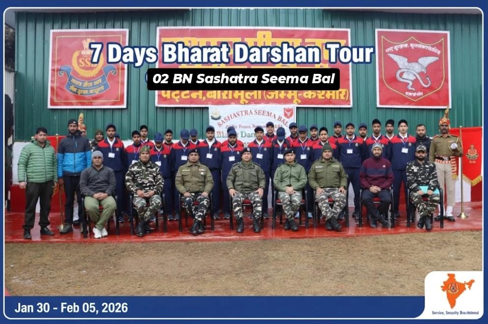 सशस्त्र सीमा बल (SSB) की 02वीं बटालियन, पट्टन द्वारा “सेवा, सुरक्षा और भाईचारा” के उद्देश्य से कश्मीर घाटी के युवाओं के लिए एक सराहनीय पहल की गई है। इसी क्रम में 25 कश्मीरी युवाओं के लिए 07 दिवसीय भारत दर्शन टूर का आयोजन किया गया है, जो 30 जनवरी 2026 से 05 फरवरी 2026 तक चलेगा।