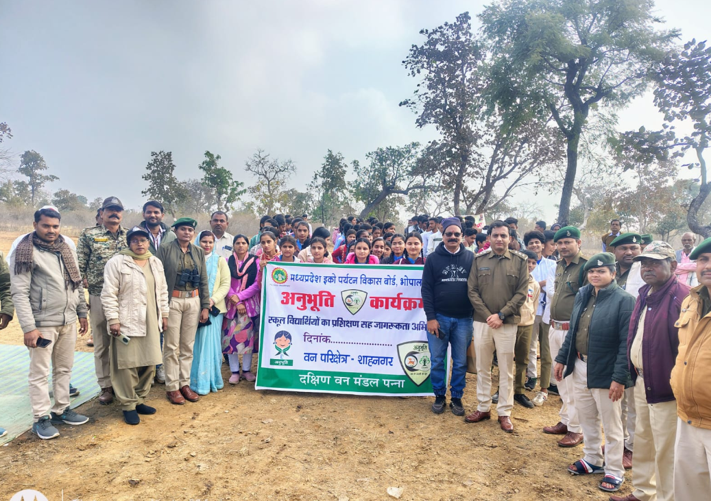 मध्यप्रदेश वन विभाग और मप्र इको टूरिज्म डेवलपमेंट बोर्ड के सहयोग से गुरुवार को शाहनगर वन परिक्षेत्र के टिकरिया बीट, बालाजी धाम में “अनुभूति कैंप” का आयोजन किया गया। यह कैंप बच्चों में वन और वन्यजीवन के प्रति जागरूकता बढ़ाने के उद्देश्य से आयोजित किया गया। इस वर्ष की वार्षिक थीम “हम धरती के दूत” पर आधारित इन शिविरों में लगभग 150 स्कूली बच्चों ने हिस्सा लिया।