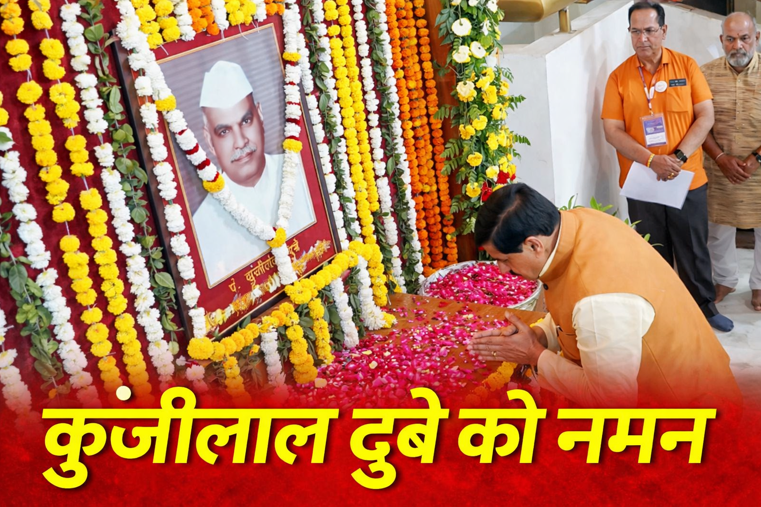 मध्यप्रदेश विधानसभा के प्रथम अध्यक्ष रहे स्वर्गीय कुंजीलाल दुबे की 130वीं जन्म-जयंती के अवसर पर विधानसभा परिसर में एक गरिमामय श्रद्धांजलि कार्यक्रम आयोजित किया गया। इस अवसर पर प्रदेश के मुख्यमंत्री डॉ. मोहन यादव ने उनके चित्र पर पुष्प अर्पित कर भावभीनी श्रद्धांजलि दी।