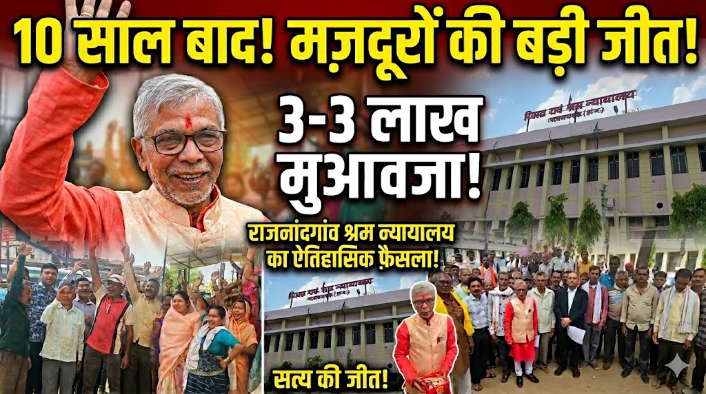 राजनांदगांव से एक बड़ी और राहत भरी खबर सामने आई है, जहां 10 साल लंबी कानूनी लड़ाई के बाद 256 मजदूरों को आखिरकार न्याय मिल गया है। श्रम न्यायालय ने एक ऐतिहासिक फैसला सुनाते हुए फैक्ट्री प्रबंधन को सभी मजदूरों को 3-3 लाख रुपये मुआवजा देने का आदेश दिया है।