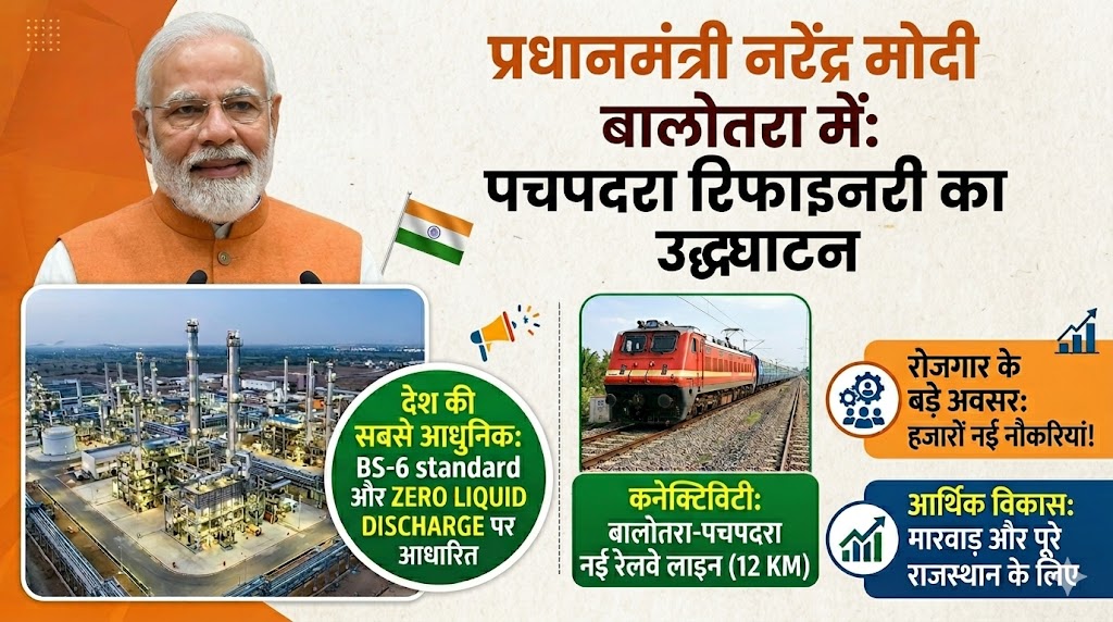 प्रधानमंत्री नरेन्द्र मोदी 21 अप्रैल को बालोतरा जिले में पचपदरा रिफाइनरी के पहले चरण का उद्घाटन करेंगे। यह रिफाइनरी राजस्थान के औद्योगिक विकास और रोजगार के अवसरों के लिए महत्वपूर्ण मानी जा रही है।