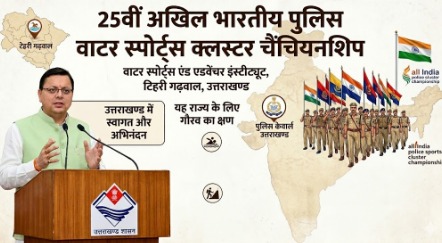मुख्यमंत्री पुष्कर सिंह धामी ने टिहरी गढ़वाल स्थित वाटर स्पोर्ट्स एंड एडवेंचर इंस्टीट्यूट में आयोजित 25वीं ऑल इंडिया पुलिस वाटर स्पोर्ट्स क्लस्टर चैंपियनशिप का वर्चुअल शुभारंभ किया। इस अवसर पर उन्होंने देशभर से आए पुलिस बल के खिलाड़ियों, अधिकारियों और खेल प्रेमियों का उत्तराखण्ड में स्वागत और अभिनंदन किया।