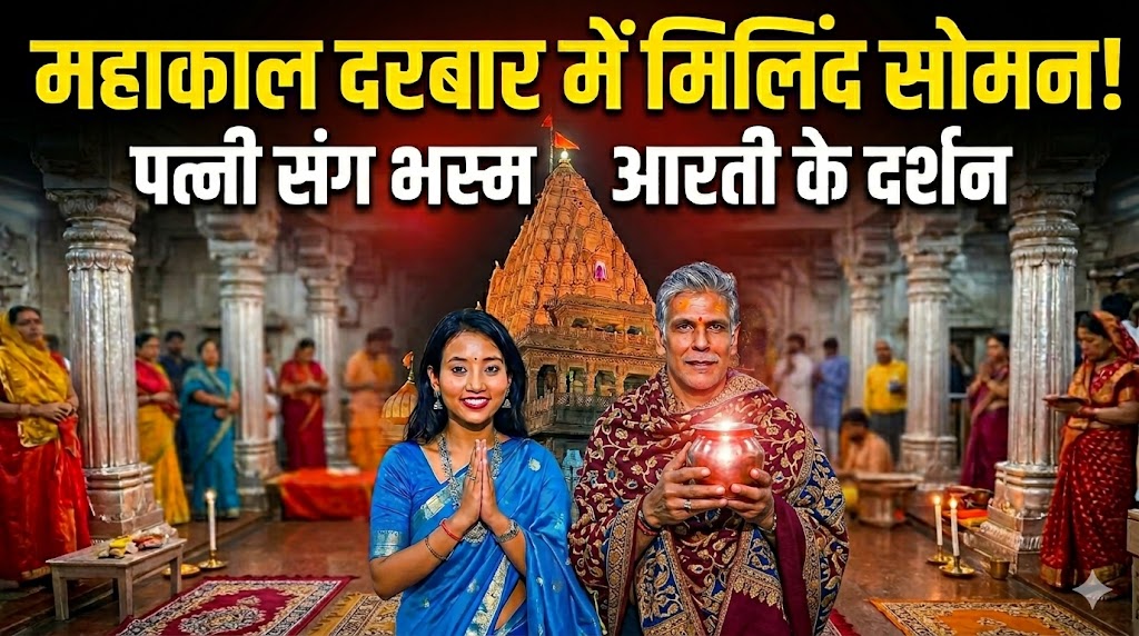 धार्मिक नगरी उज्जैन में स्थित विश्व प्रसिद्ध महाकालेश्वर मंदिर में प्रातःकालीन भस्म आरती के दौरान प्रसिद्ध अभिनेता मिलिंद सोमन अपनी पत्नी के साथ दर्शन करने पहुंचे।
