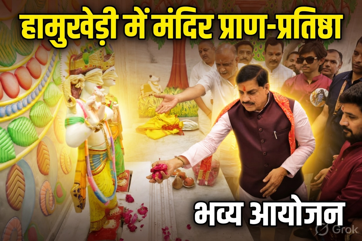 उज्जैन जिले के हामुखेड़ी में दिव्य मंदिर प्राण-प्रतिष्ठा महोत्सव के साथ सामूहिक विवाह सम्मेलन का भव्य आयोजन किया गया। इस कार्यक्रम में सीएम डॉ. मोहन यादव मुख्य रूप से शामिल हुए।