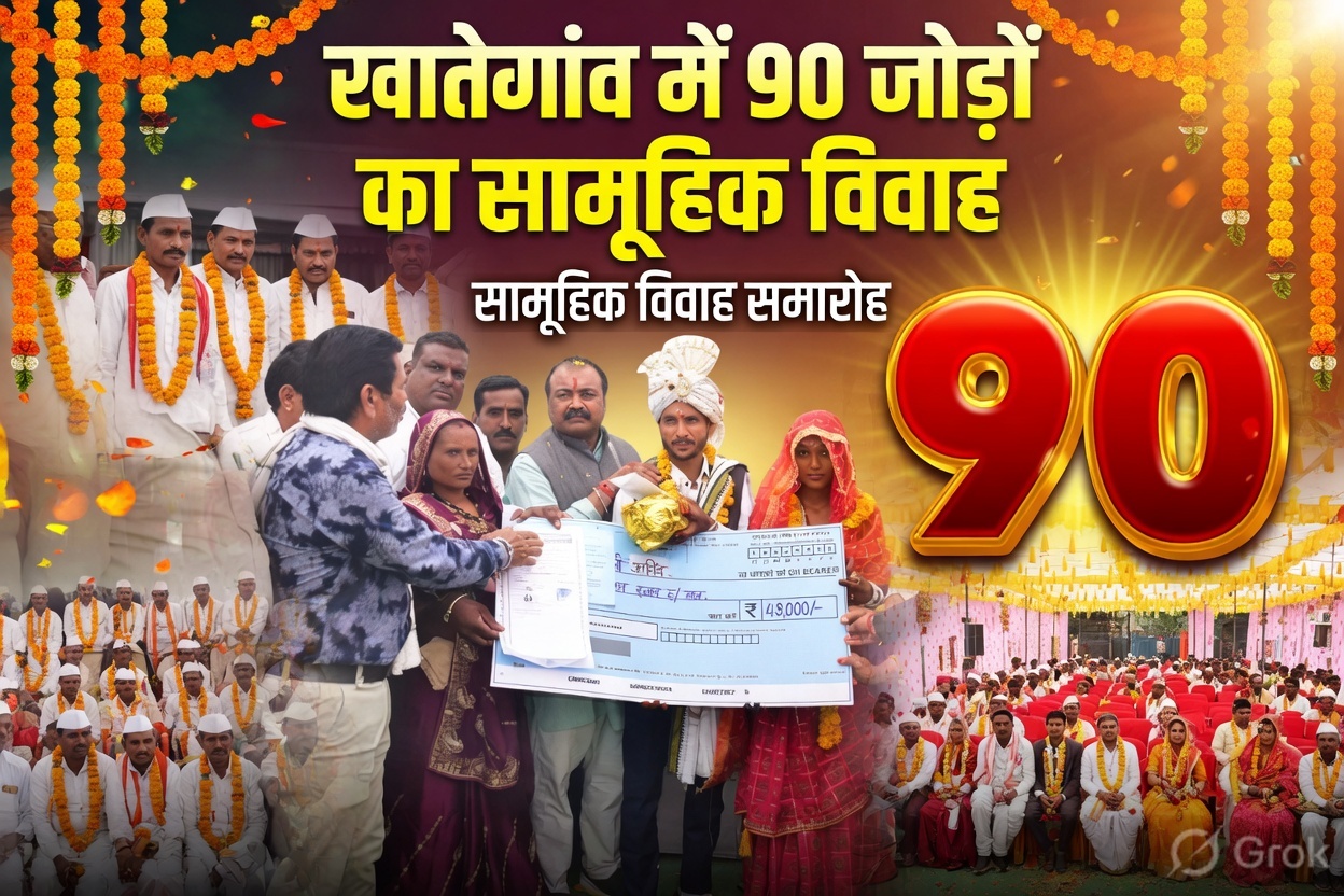 देवास जिले के खातेगांव में कृषि उपज मंडी प्रांगण में मुख्यमंत्री कन्या विवाह/निकाह योजना के अंतर्गत भव्य सामूहिक विवाह सम्मेलन का आयोजन किया गया। जनपद पंचायत खातेगांव के तत्वावधान में आयोजित इस कार्यक्रम में कुल 90 नवयुगल परिणय सूत्र में बंधे, जिसमें 69 जोड़े अनुसूचित जाति, अनुसूचित जनजाति एवं अन्य वर्ग से थे, जबकि 21 जोड़ों का निकाह मुस्लिम रीति-रिवाज से संपन्न कराया गया।