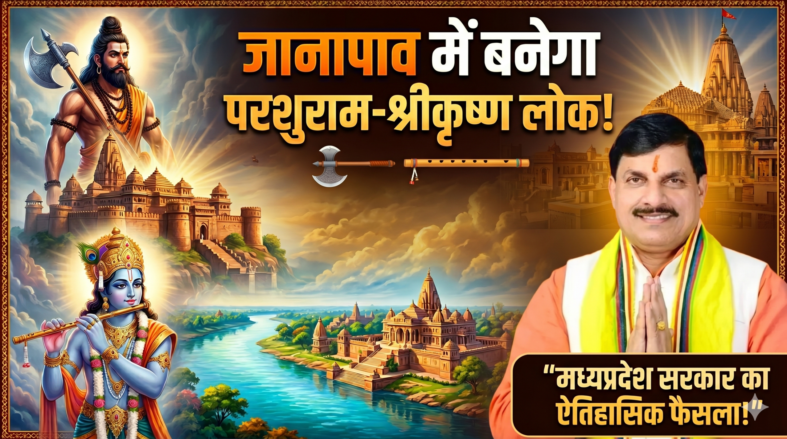 मध्यप्रदेश सरकार ने धार्मिक और सांस्कृतिक विरासत को नई पहचान देने की दिशा में एक महत्वपूर्ण कदम उठाया है। मुख्यमंत्री सीएम डॉ. मोहन यादव की अध्यक्षता में आयोजित कैबिनेट बैठक में इंदौर जिले की पावन धरा जानापाव में ‘श्री परशुराम-श्रीकृष्ण लोक’ के निर्माण को मंजूरी दी गई है। इस परियोजना पर लगभग 17 करोड़ 41 लाख रुपये खर्च किए जाएंगे।