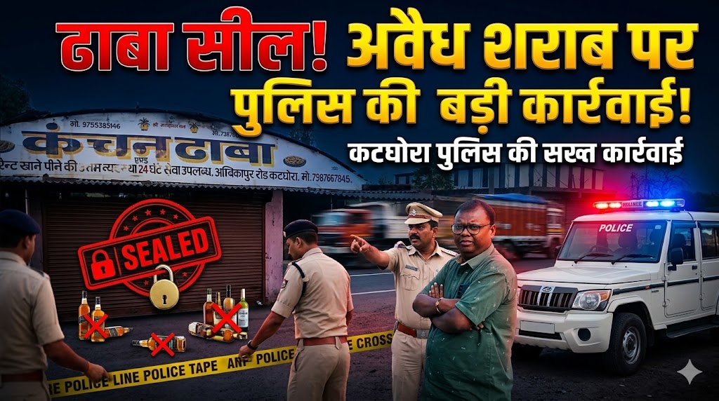 कोरबा जिले में अवैध गतिविधियों पर नियंत्रण के तहत पुलिस ने बड़ी कार्रवाई करते हुए नेशनल हाईवे स्थित कंचन ढाबा को सील कर दिया। यह कार्रवाई थाना कटघोरा क्षेत्र के तानाखार इलाके में की गई, जहां लंबे समय से अवैध शराब से जुड़ी गतिविधियों की शिकायतें मिल रही थीं।